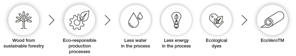 EcoVero ™ fibre er laget av trepulp, et naturlig og fornybart råmateriale. Tremateriale kommer fra bærekraftig skogplantasjer som er 100% sertifisert av bransjeledende foreninger. LENZING ™, som eier merkenavnet, bruker kun FSC og PEFC-sertifisert tre fra bærekraftig skogbruk. Trematerialet er hentet lokalt, noe som reduserer CO2-utslippene med 50%.