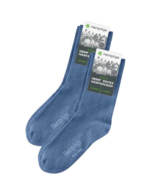 2 par blå unisex sokker fra HempAge. Slitesterke som puster godt og passer godt til aktivitet og fritid.