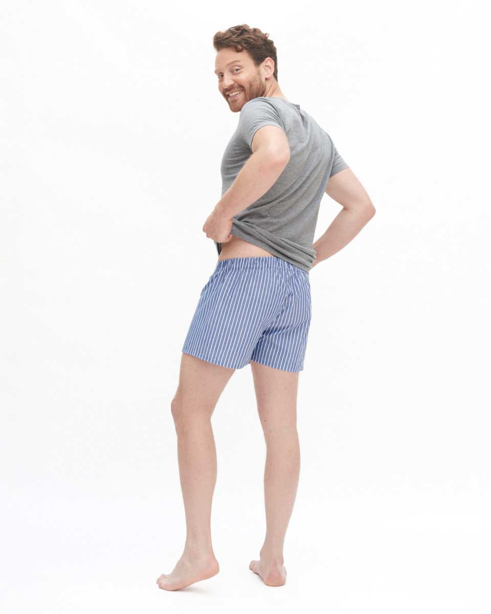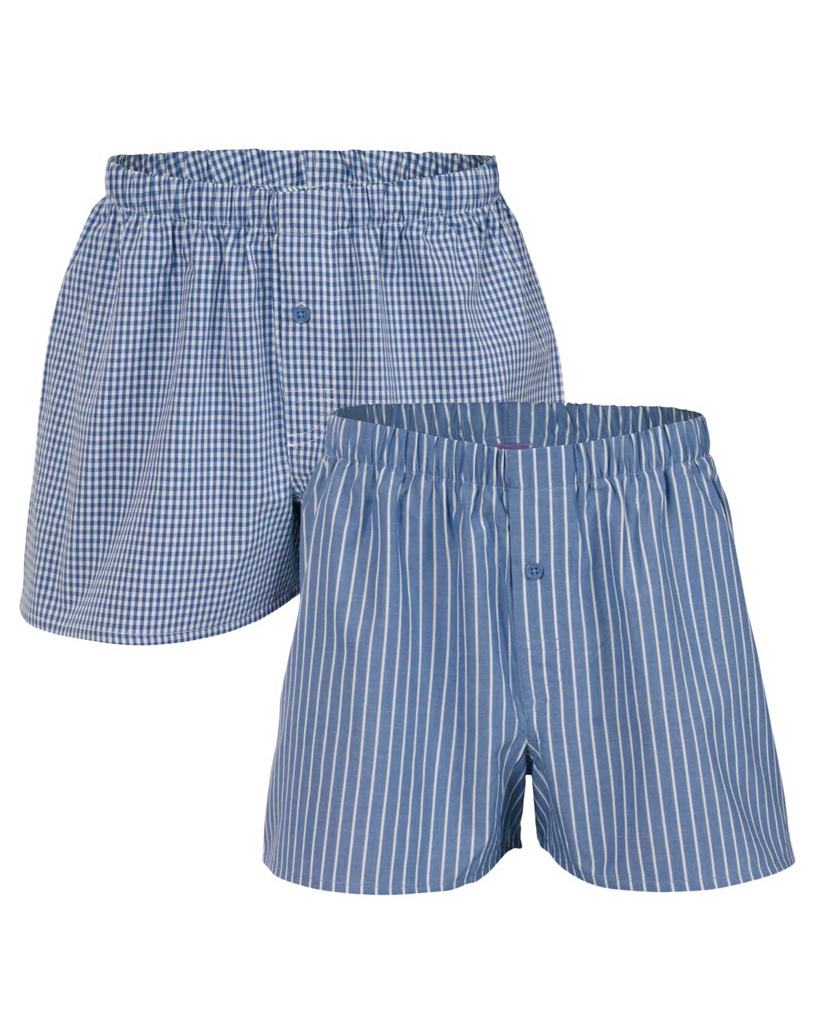 2 pakning boxer fra Living Crafts med løs passform. Boxerne er i fargene blå og hvit, den ene med ruter og den andre med striper. Gylf med knapp.