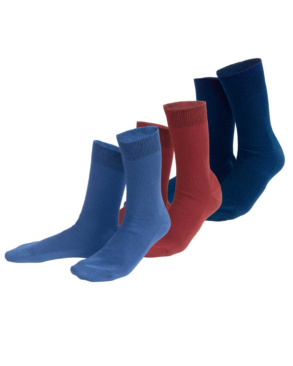 3 pack sokker uten plaststoffer – blå/rød