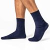 Finribbede sokker av 100 % økologisk bomull fra Living Crafts. Unisex med svært god komfort. Sokkene er mørkeblå, blå og rød.