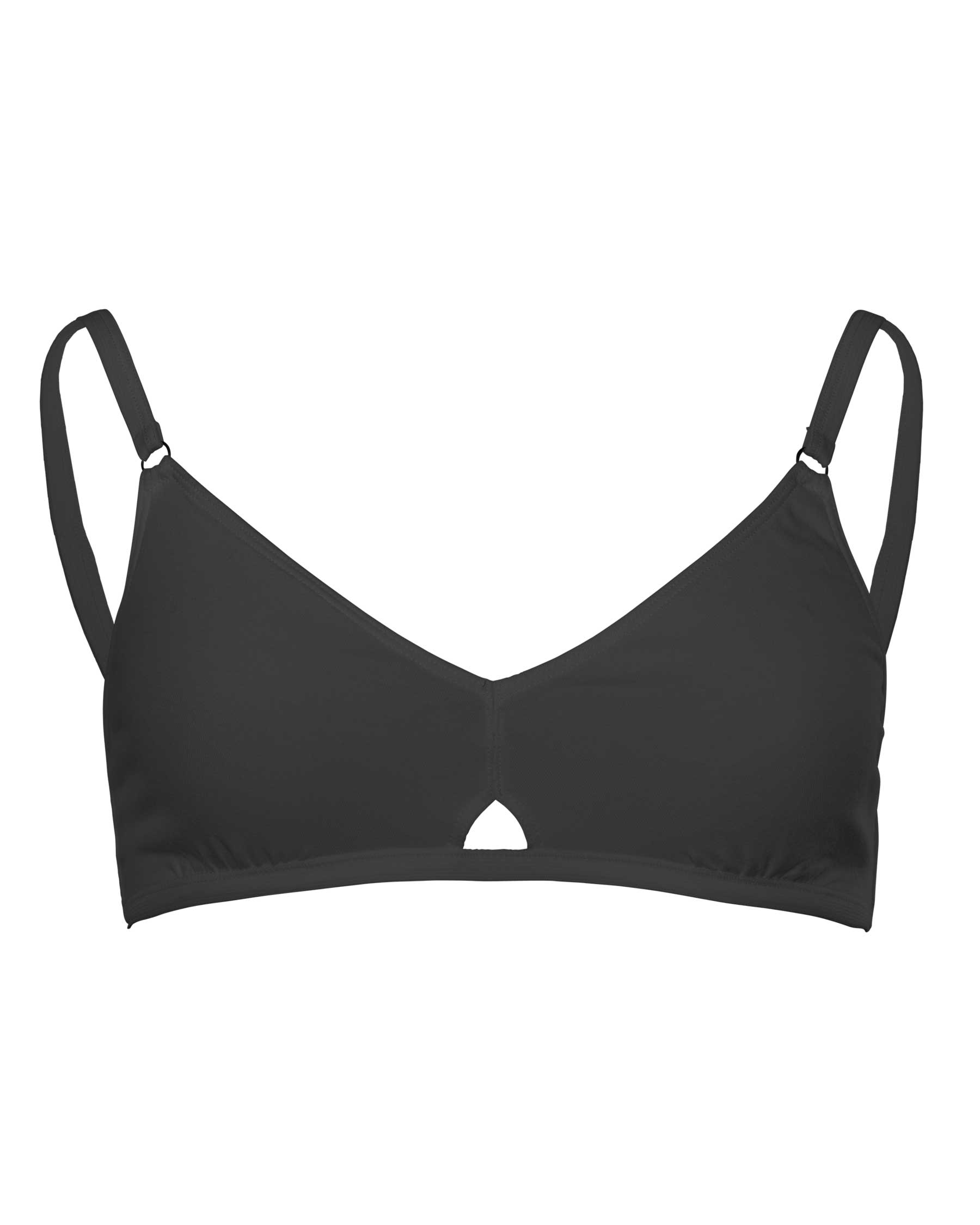 Svart trekant BH uten spiler fra Living Crafts. Denne er uten vattering med justerbare skulderstropper og hekter på ryggen. Myk og behagelig med elastisk bånd nederst.
