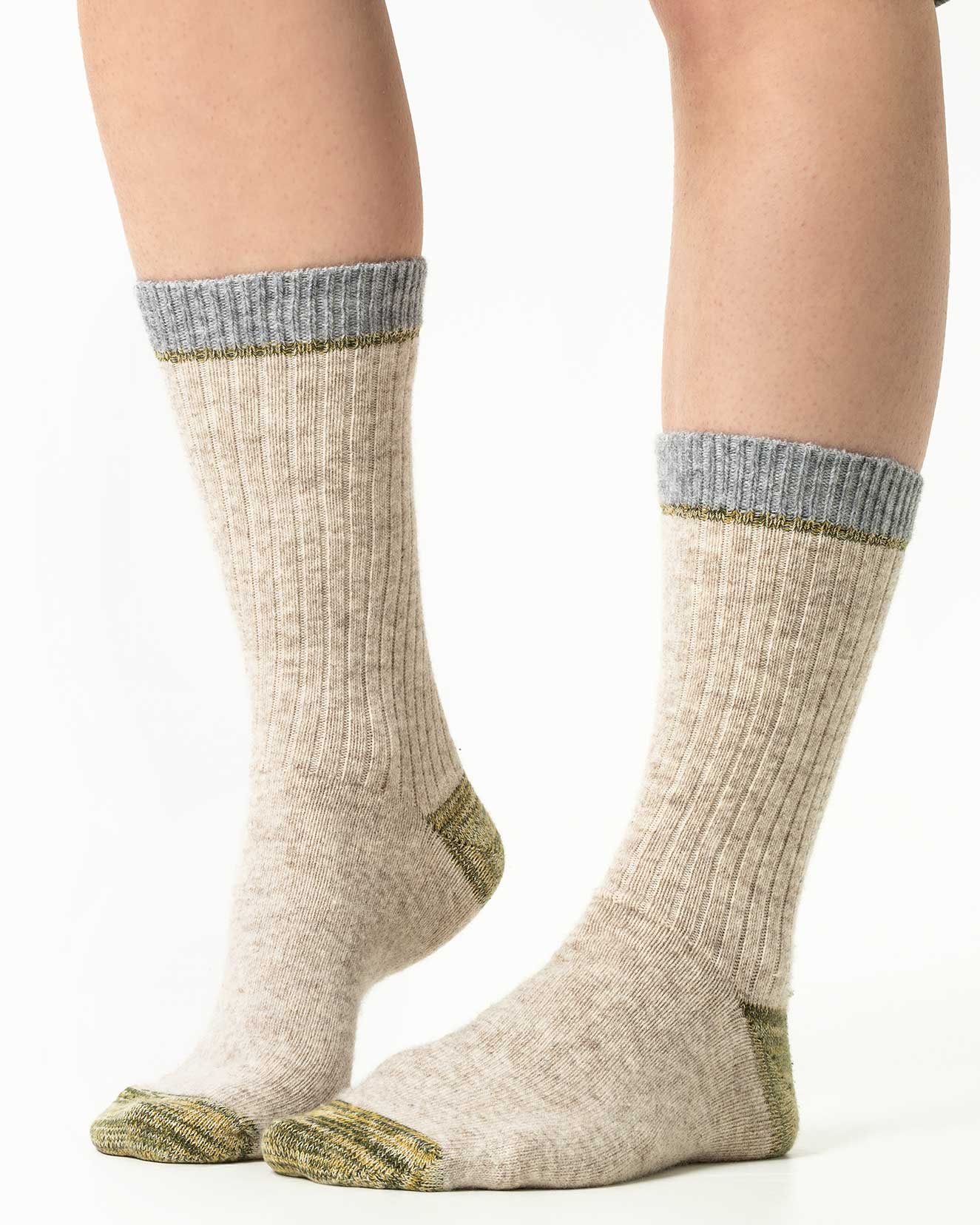 Mellomtykke sokker fra Living Crafts med ull og økologisk bomull. Disse har ribbet detaljer og sitter mykt og godt rundt foten.