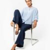 Lyseblå linbluse med striper – 100 % lin