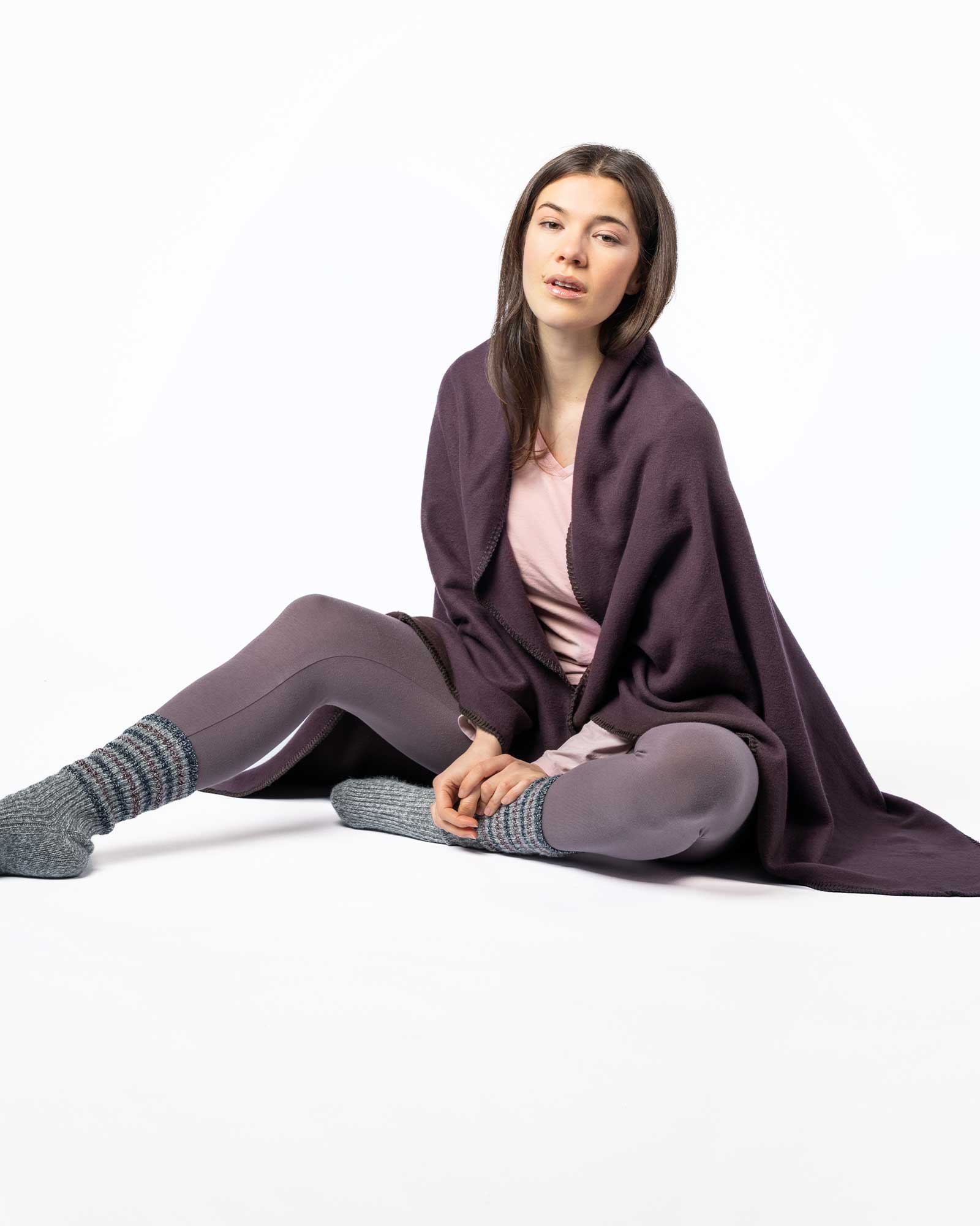 Mørk aubergine pledd i 100 % bomullsfleece