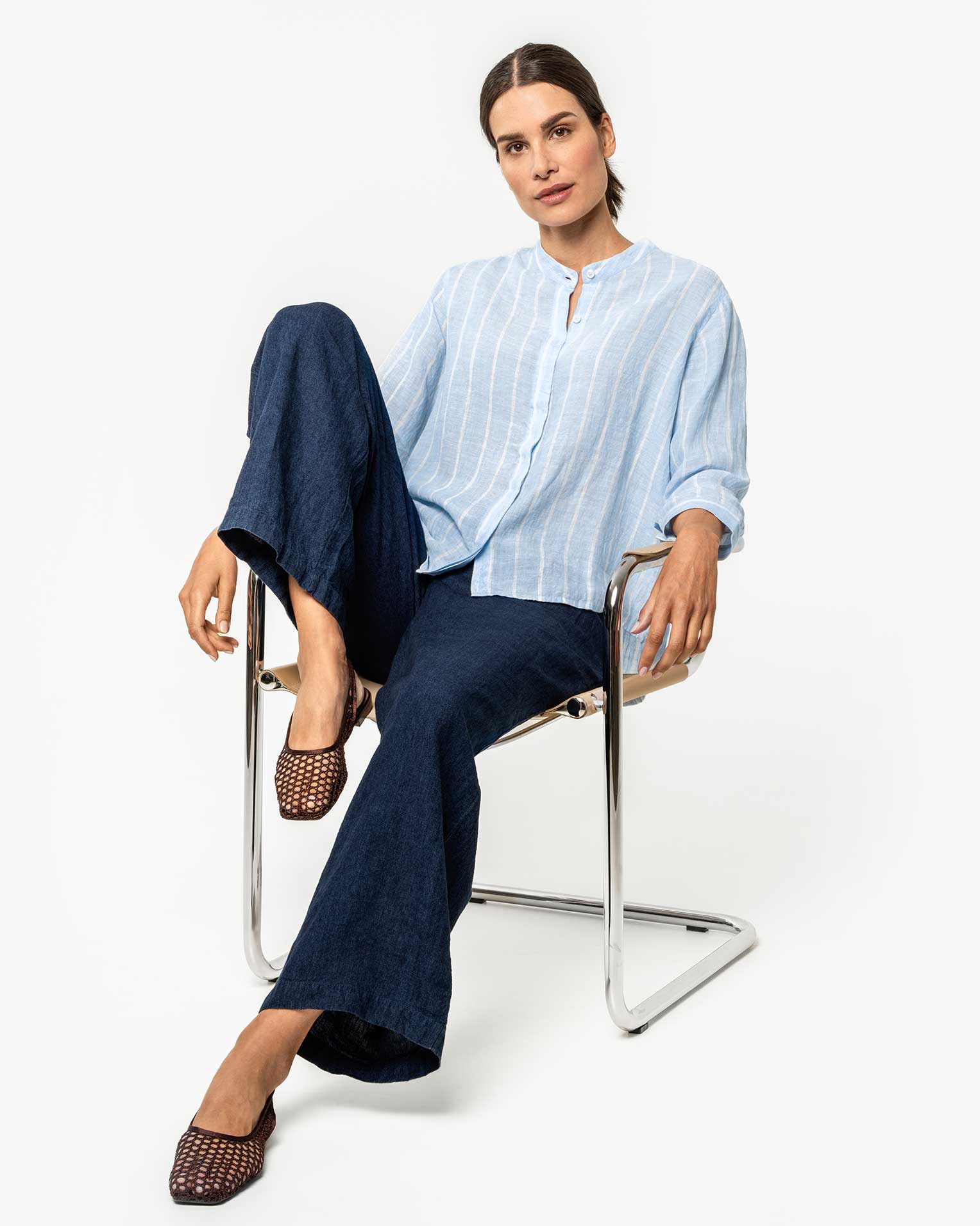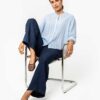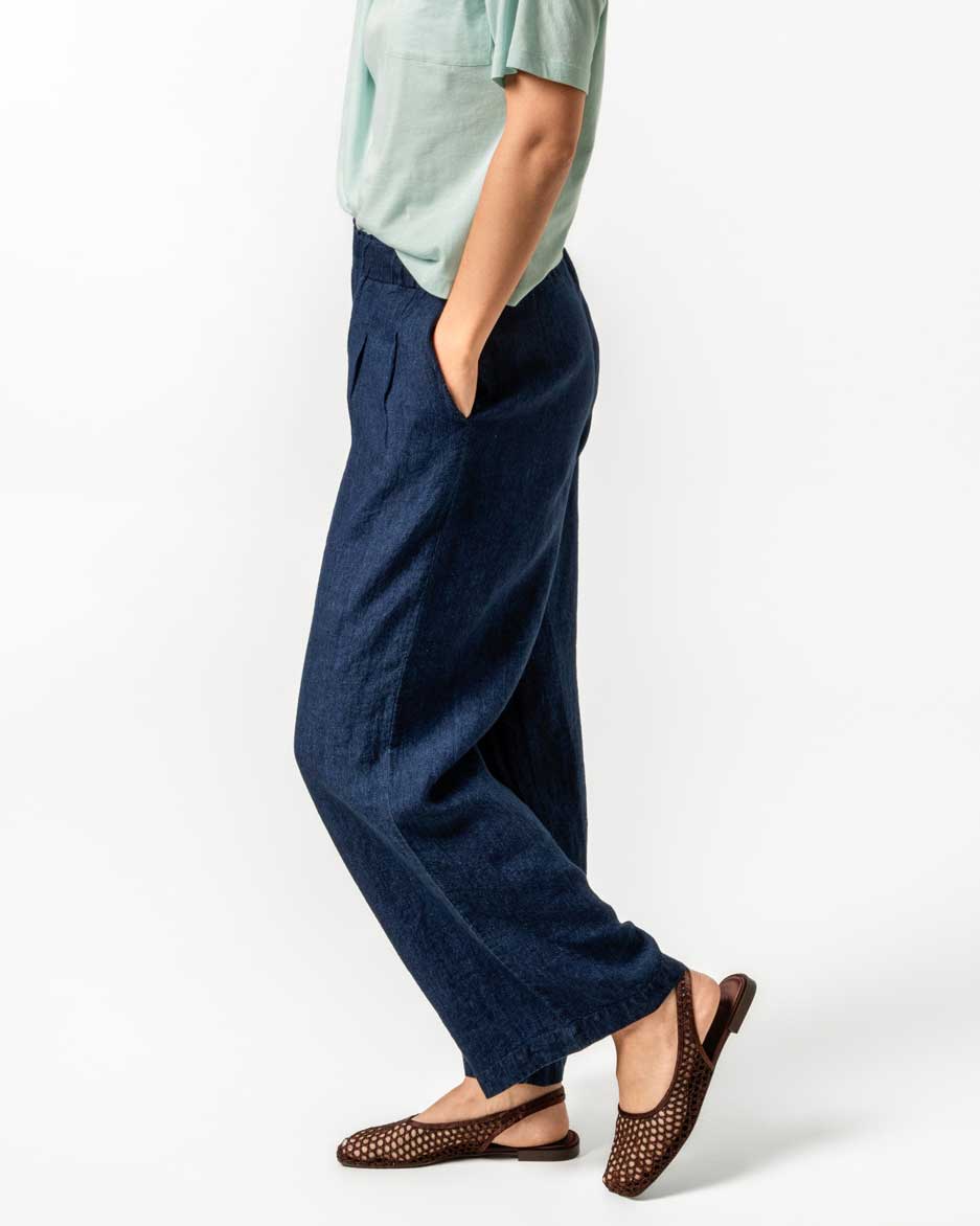 Mørkeblå løs bukse – 100 % lin