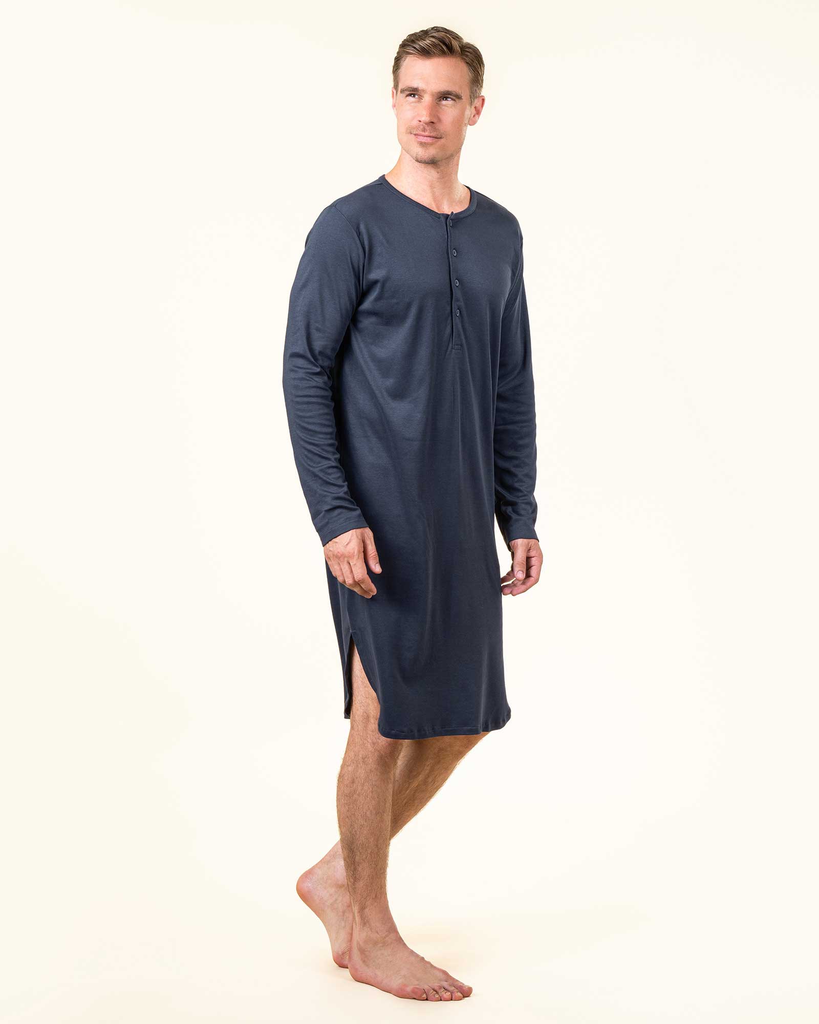 Living Crafts originaler – en ekte klassiker. Denne tidløse langermede nattskjorten med avrundet kant, splitt i sidene og den lange knappekanten i retro-look har eksistert for 20 år siden og er nå omarbeidet så langt som snitt og kvalitet. Tips: En perfekt nattskjorte til mamma rett etter fødselen, siden den er spesielt egnet for amming på grunn av den ekstra lange knappekanten.