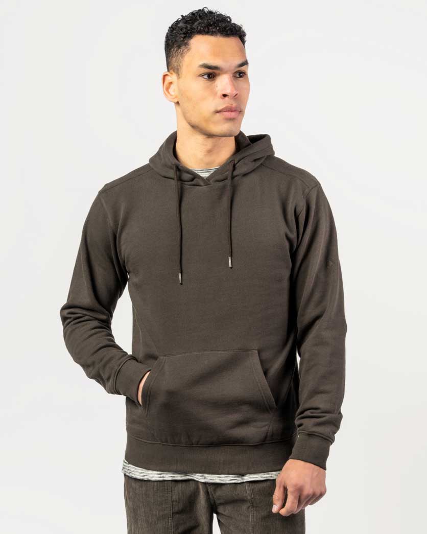 Mørkebrun hettegenser i 100% økologisk bomull