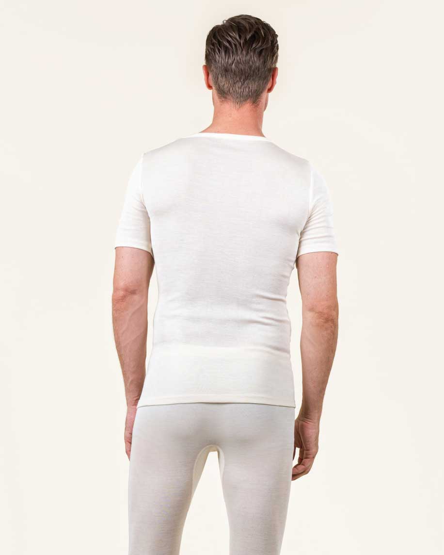 Naturhvit t-skjorte i 70 % økologisk ull og 30% silke