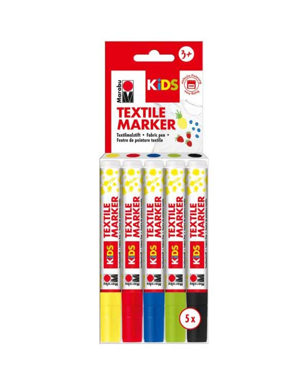 Tekstiltusjene er laget spesielt for barn fra 3 år. Egnet for små hender og har en robust tupp. Enkel i bruk, trenger ikke pumpe frem fargen. Egnet til alle lyse stoffer med maks 20% syntetiske fibre. Fikseres på vrangen når den er tørr i 3 minutt eller i stekeovn (8 min.150°C) og tåler da vask på inntil 60°C.