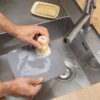 Vi oppbevarer såper og vaskeprodukter på et annet rom enn klærene.