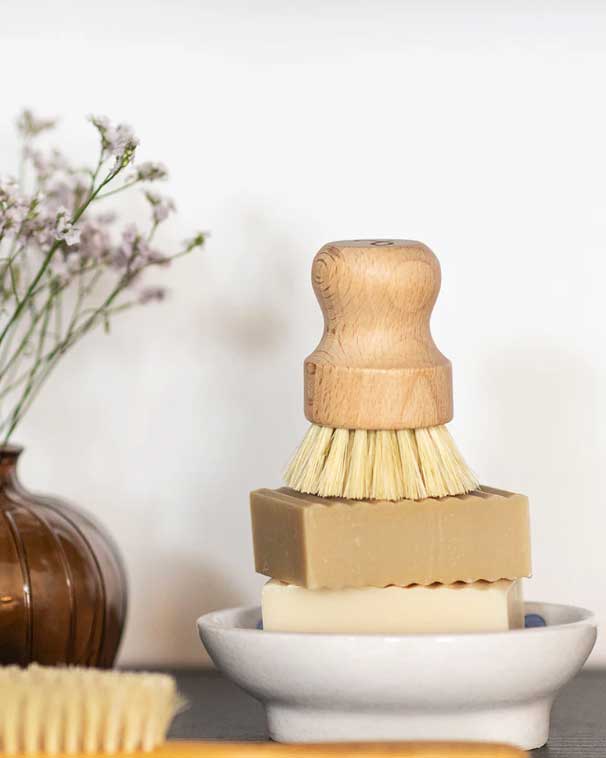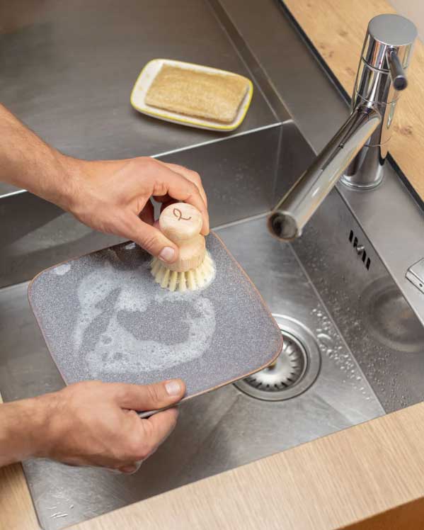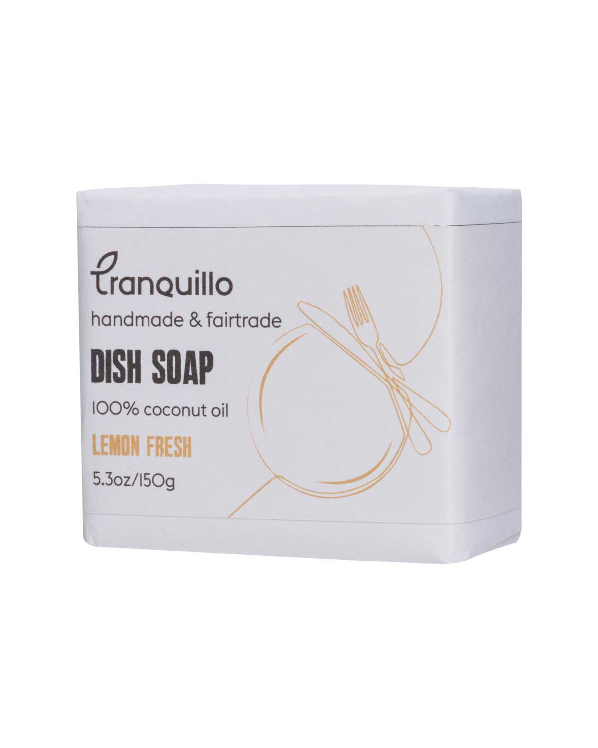 Håndlaget oppvaskssåpe uten palmeolje med duft av sitron. Såpen er Fairtrade, vegansk og laget av medlemmer av World Fair Organization. Gni såpen men en oppvaskbørste med litt vann til det skummer. Ta oppvasken og skyll godt.