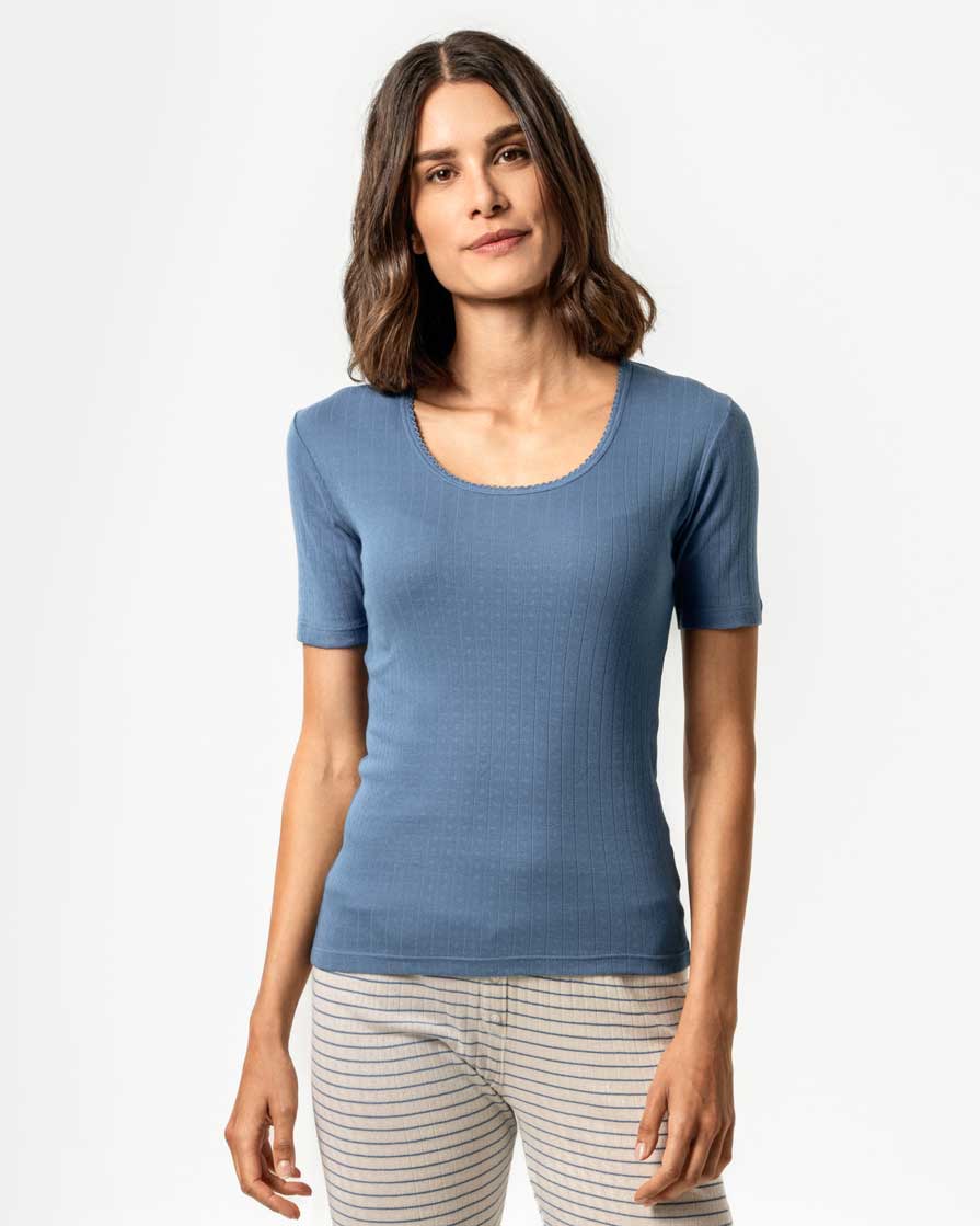 Pointelle t-skjorte i 100 % økologisk bomull – blå