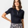 Utrolig myk og behagelig topp i ribbestrikk som gir god naturlig stretch og komfort. Toppen har 3 knapper av metall og krage. Halvlange ermer.