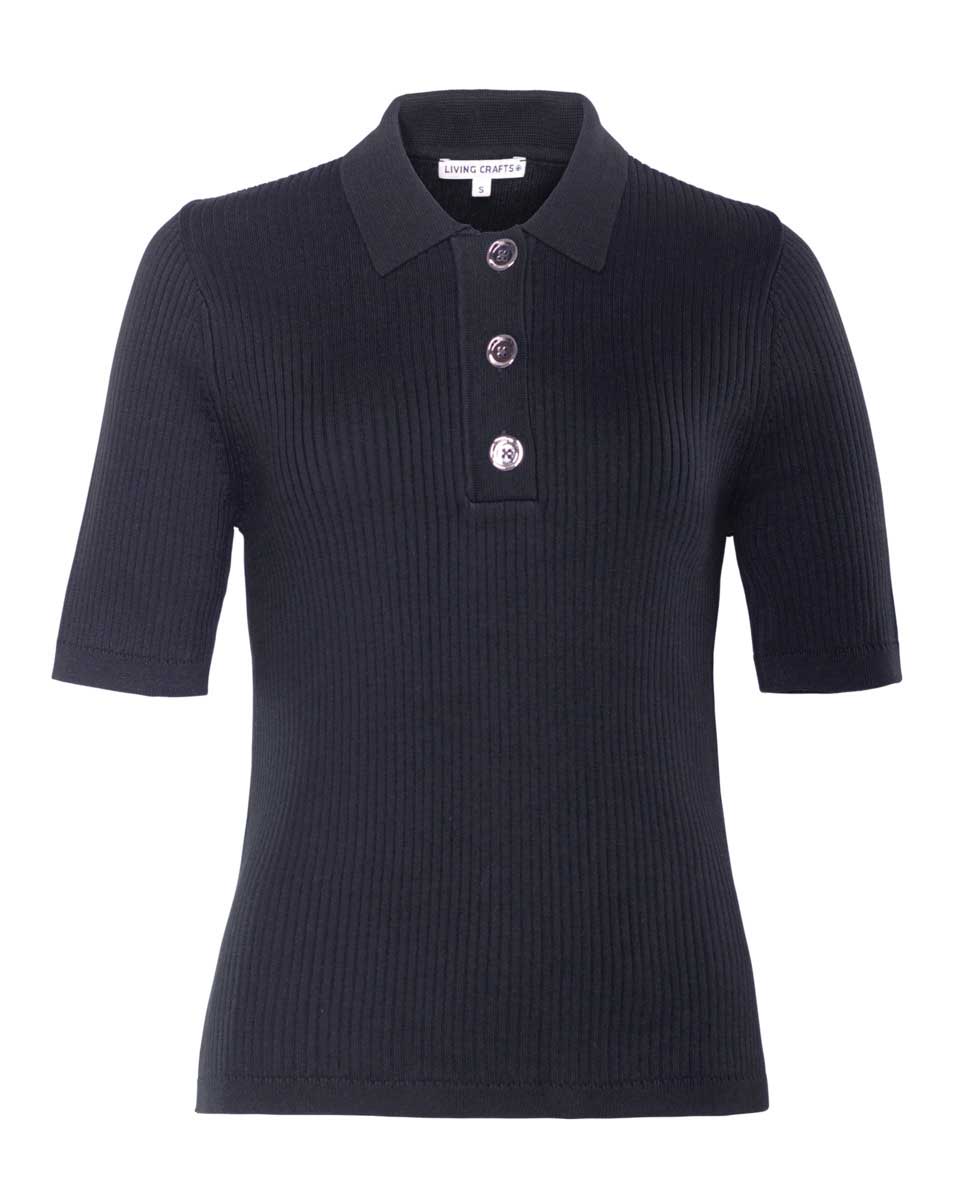 Utrolig myk og behagelig topp i ribbestrikk som gir god naturlig stretch og komfort. Toppen har 3 knapper av metall og krage. Halvlange ermer.