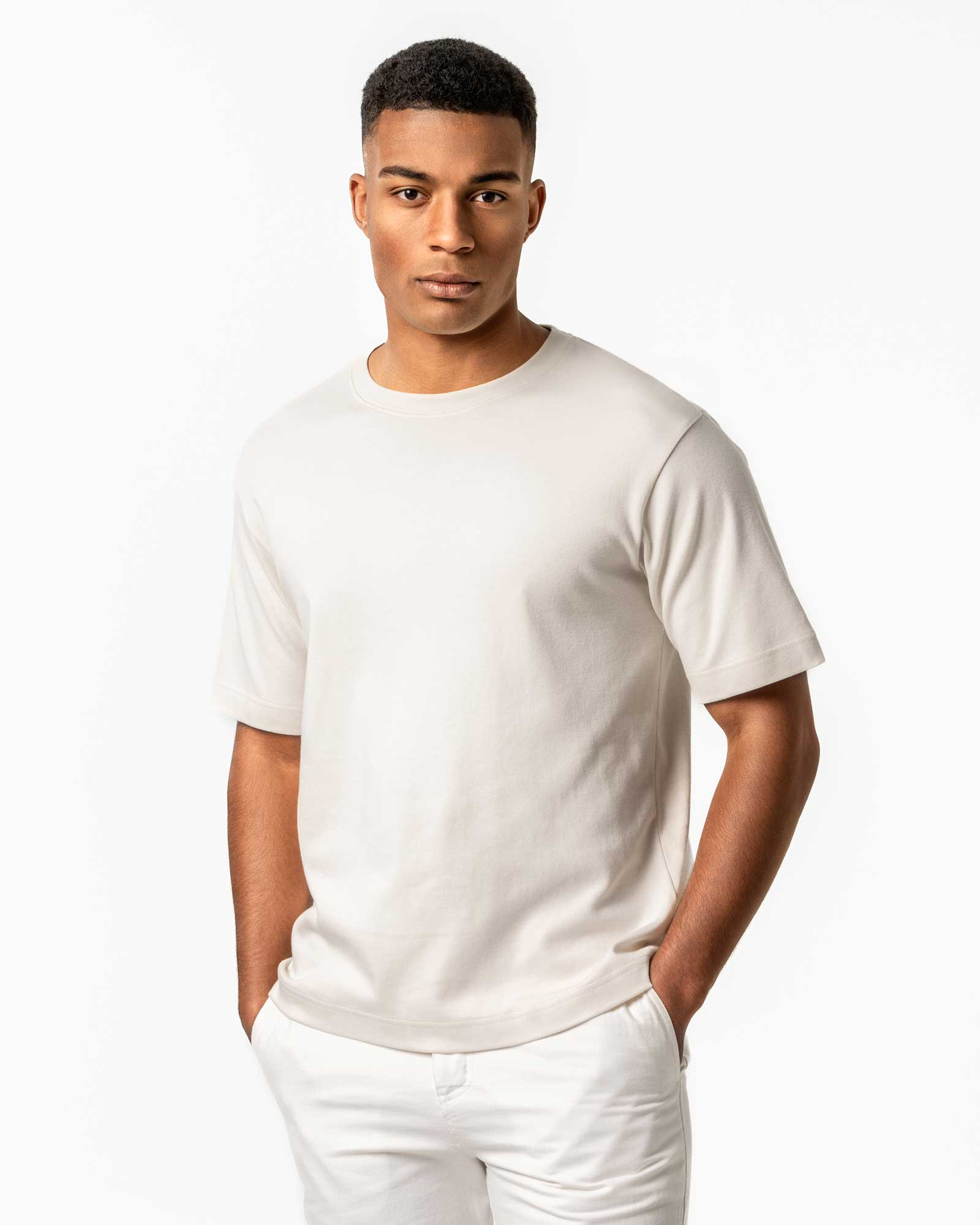 Naturhvit t-skjorte i ekstra tykk bomull.