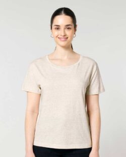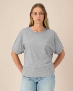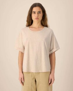 Oversized t-skjorte med oppbrett på ermene – beige melert
