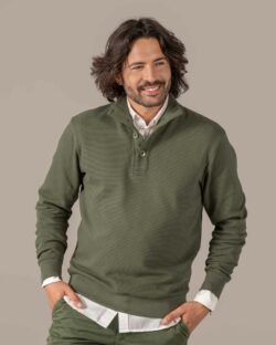 Mosegrønn genser med halvhøy hals – 100 % økologisk bomull