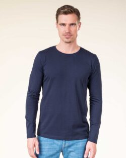 Mørkeblå genser med halvhøy hals – 100 % økologisk bomull