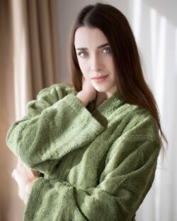 Grønn morgenkåpe i 100 % økologisk bomull