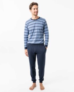 Full pysjamas med blåstripete overdel – 100% økologisk bomull