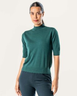 Mørkeblå t-skjorte med 2/4 arm – 100 % økologisk bomull